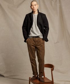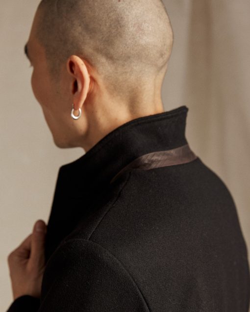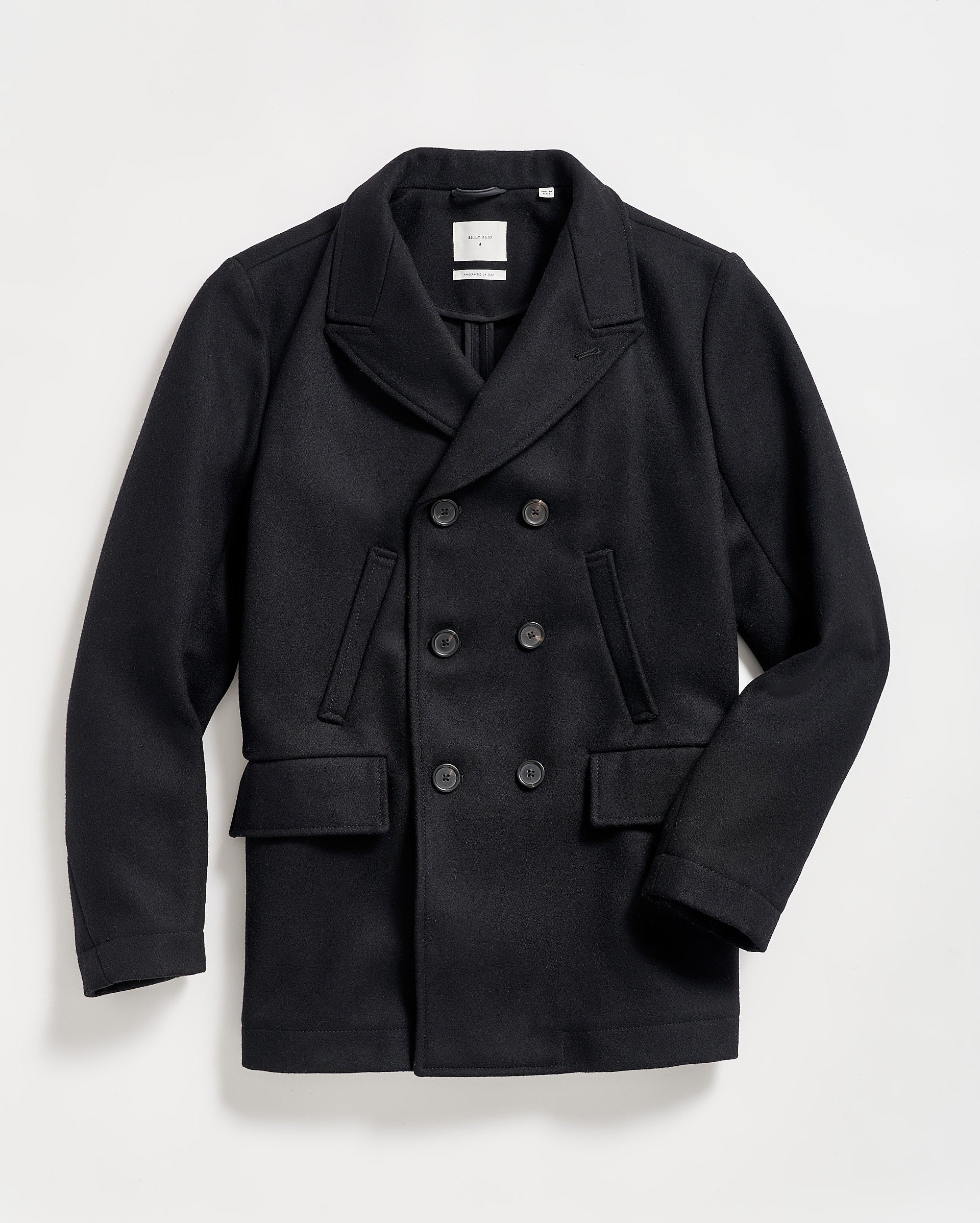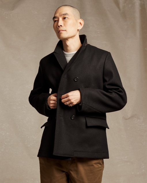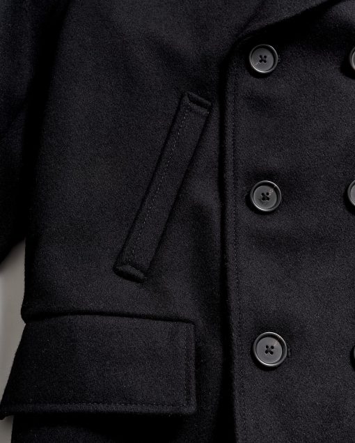 Our first version of the Bond Peacoat dates back two decades. Originally named after our Bond Street store in New York, Daniel Craig famously wore it in the James Bond movie Skyfall. The response to that moment made the peacoat one of our most beloved pieces. Our iconic Bond is made in Italy from warm, sturdy Melton wool and thoughtfully finished with bound seams. This mark of craftsmanship eliminates the need for a liner, reducing bulk and ensuring comfort. The piece is finished with our signature heirloom ribbon stripe embossed on luxe calfskin leather under the collar, handwarmer chest pockets, and genuine horn buttons. It remains an enduring take on a menswear classic.