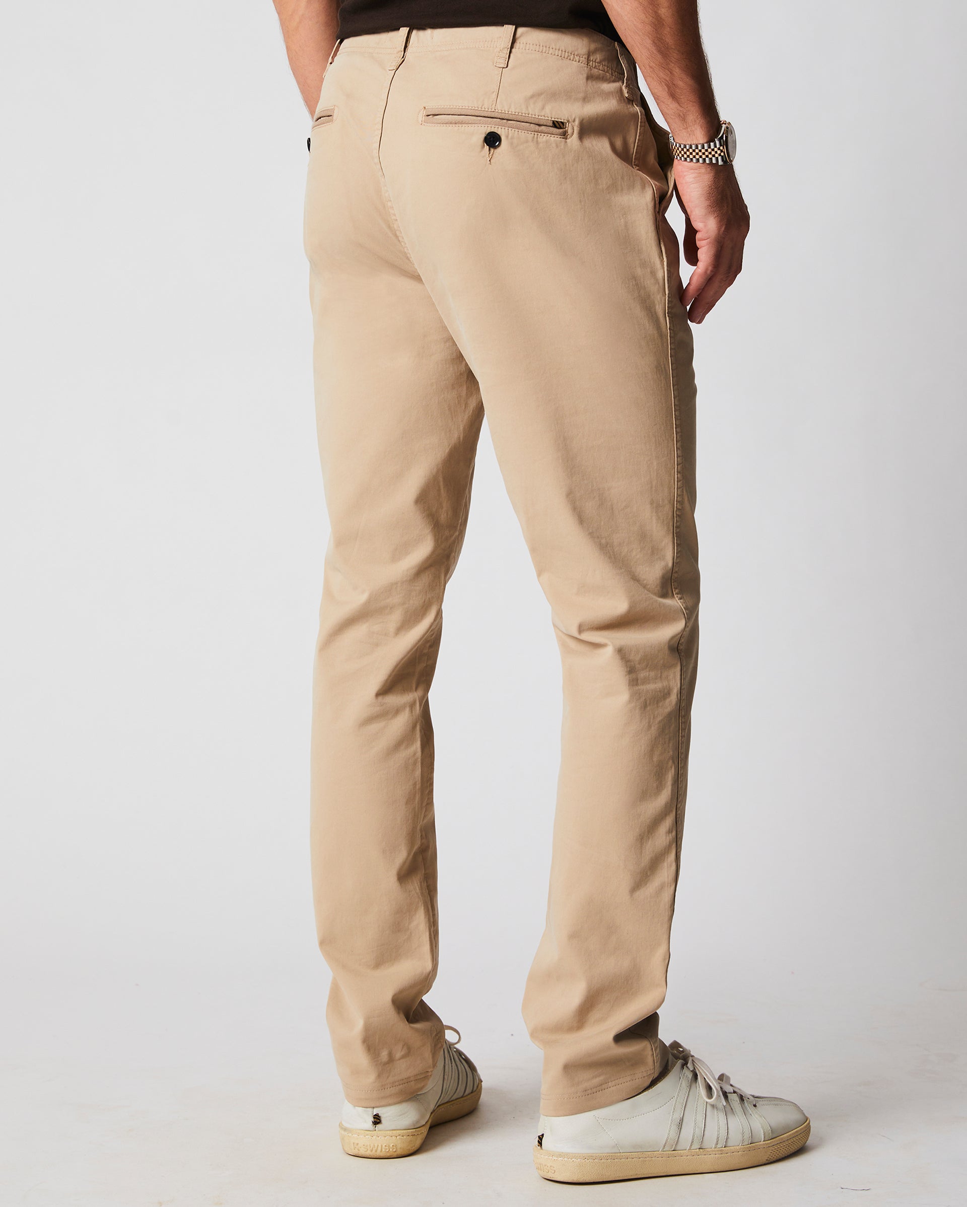 Our Chino Pant is a lightweight, year-round essential woven from ultra-soft cotton in our custom left-hand twill. This weave gives them a beautiful, worn-in feel and a hint of stretch for ease of movement. They feature our Hollywood waistband, a classic construction technique that provides an incredible fit and a sleek, uninterrupted line to the waist. Garment-dyed for a lived-in look and feel and finished with elevated details like reinforced belt loops, twill tape for form and function, a coin pocket, and genuine dark horn buttons.