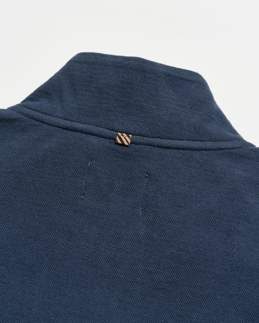 An easy, elevated layering piece as the seasons change, this menswear essential is crafted from a pique cotton blend that offers style and versatility in equal measure. It features a stand-up collar, antique brass zipper pull beautifully branded with our signature heirloom ribbon stripe, and a zipper garage.