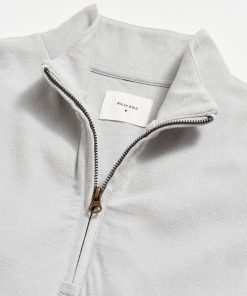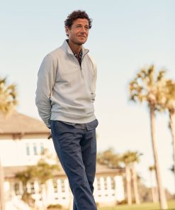 This half zip is standard fit. Model is 6’2″ wearing size medium.