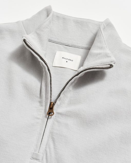 An easy, elevated layering piece as the seasons change, this menswear essential is crafted from a pique cotton blend that offers style and versatility in equal measure. It features a stand-up collar, antique brass zipper pull beautifully branded with our signature heirloom ribbon stripe, and a zipper garage.