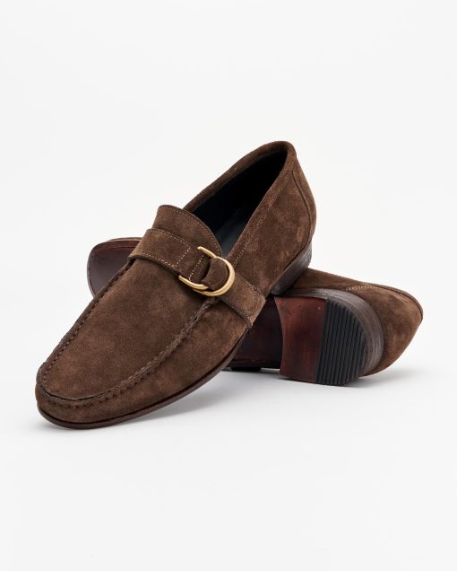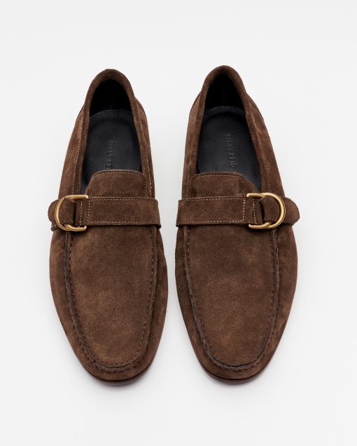 The D-Ring Loafer is our elevated approach to the classic driving loafer. Handcrafted in Italy, the upper is constructed from a beautifully soft calfskin suede, with a fully lined and supple goat leather interior that gives it its structure. The soles are our lightweight comfort flex soles, made from soft leather that offers a broken-in feel right out of the box, and they will perfectly mold to the shape of your foot over time. Finishing touches include an antique brass D-ring closure, hand stitching around the toe, leather binding at the shoe opening, and a stacked leather heel with a heel counter for added support. The D-Ring loafer is timeless and versatile and will only improve with wear. The D-Ring Loafer is crafted with an Italian last. We recommend sizing up a half-size.