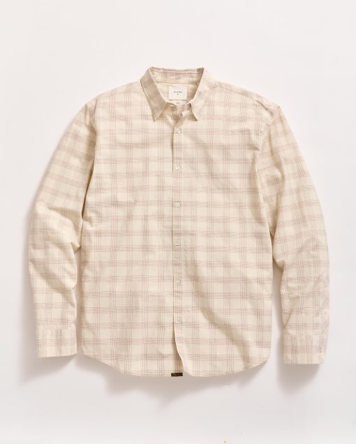 This classic shirt silhouette is one that we’re bringing back in a new fabric and pattern. The cotton-linen blend features two hidden button-down collars, a split straight bias yoke, barrel cuffs, and a tonal thread throughout the body. It has a classic looking feel for a button down in a standard fit that looks great on its own, worn open, or layered under a blazer. We’ve finished the shirt with our signature Billy Reid heritage stripe at the bottom underplacket.