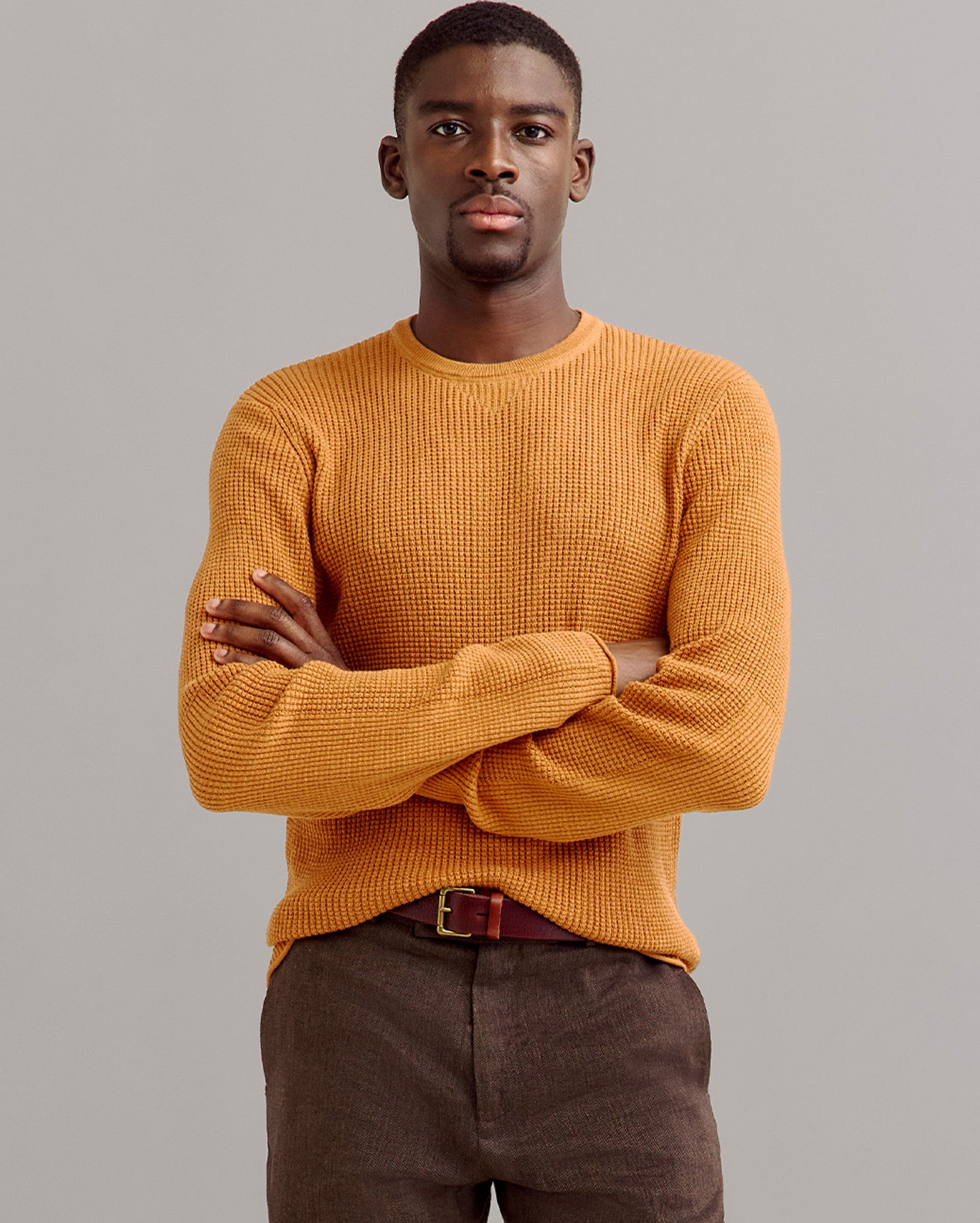 Billy Reid Men’s Mini Waffle Crew | Dark Honey
