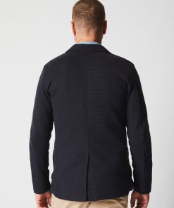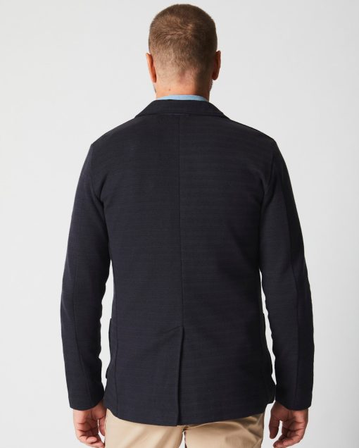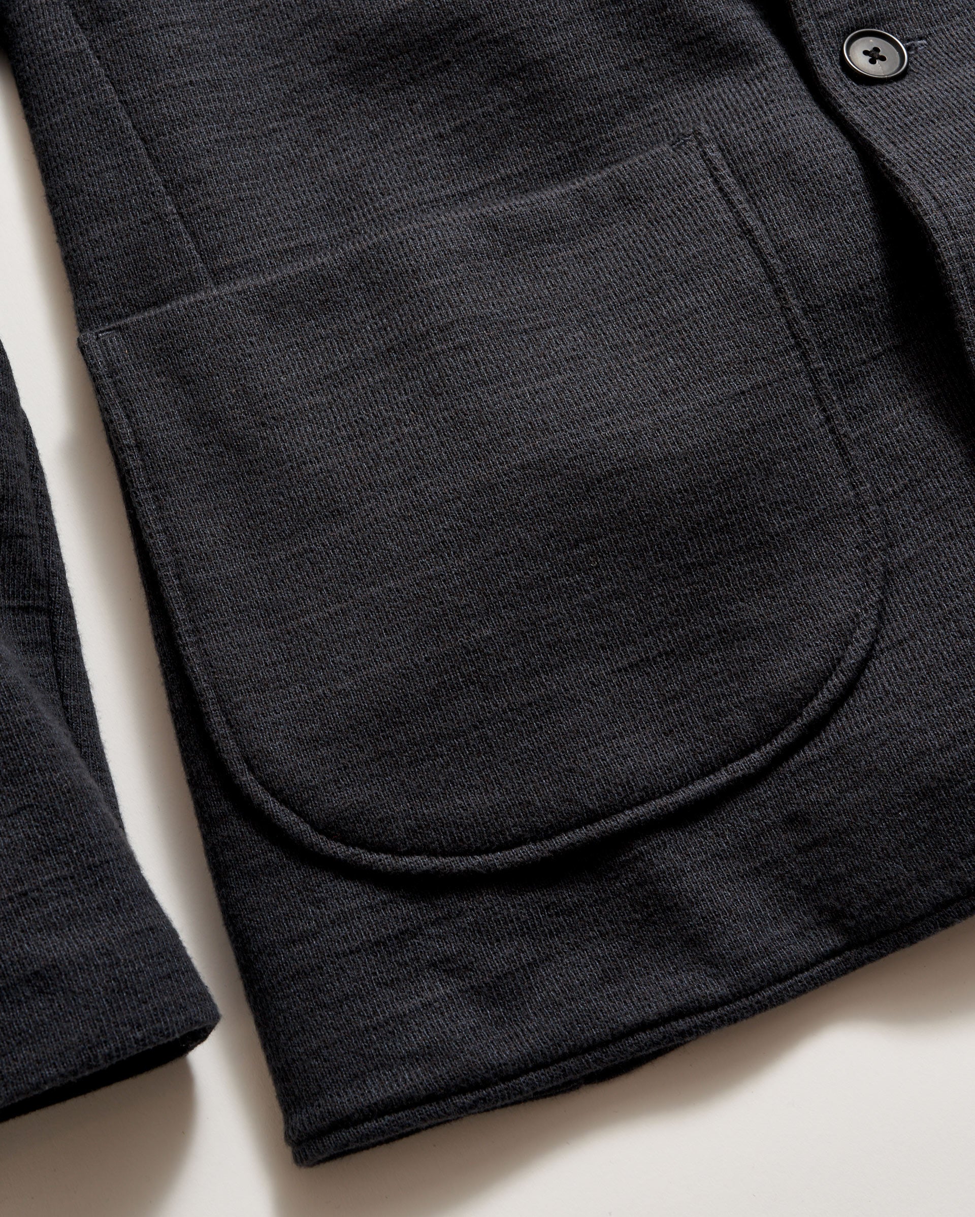 Pairing the silhouette of a suit jacket with the comfort and ease of a knit, this piece offers the best of both worlds. Thoughtful finishing touches include patch pockets at the waist, textural raised Ottoman stitching, a self-locker loop, genuine dark horn buttons, and our signature heirloom clamshell at the left sleeve. It’s a sport-inspired piece that is casual, lightweight, and the perfect layering piece you can easily dress up or down.