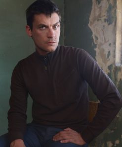 Billy Reid Men’s Quilted Half Zip | Chocolate