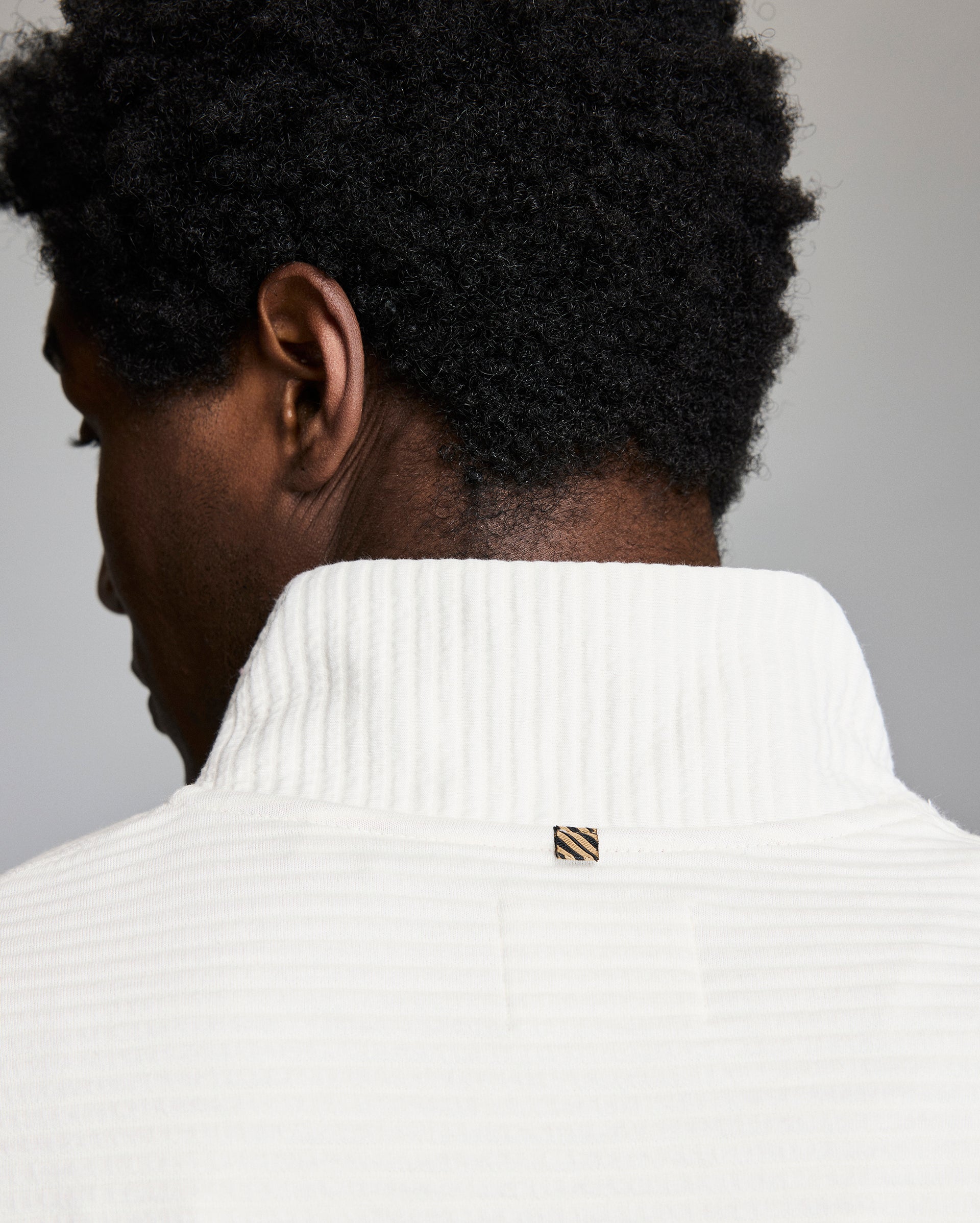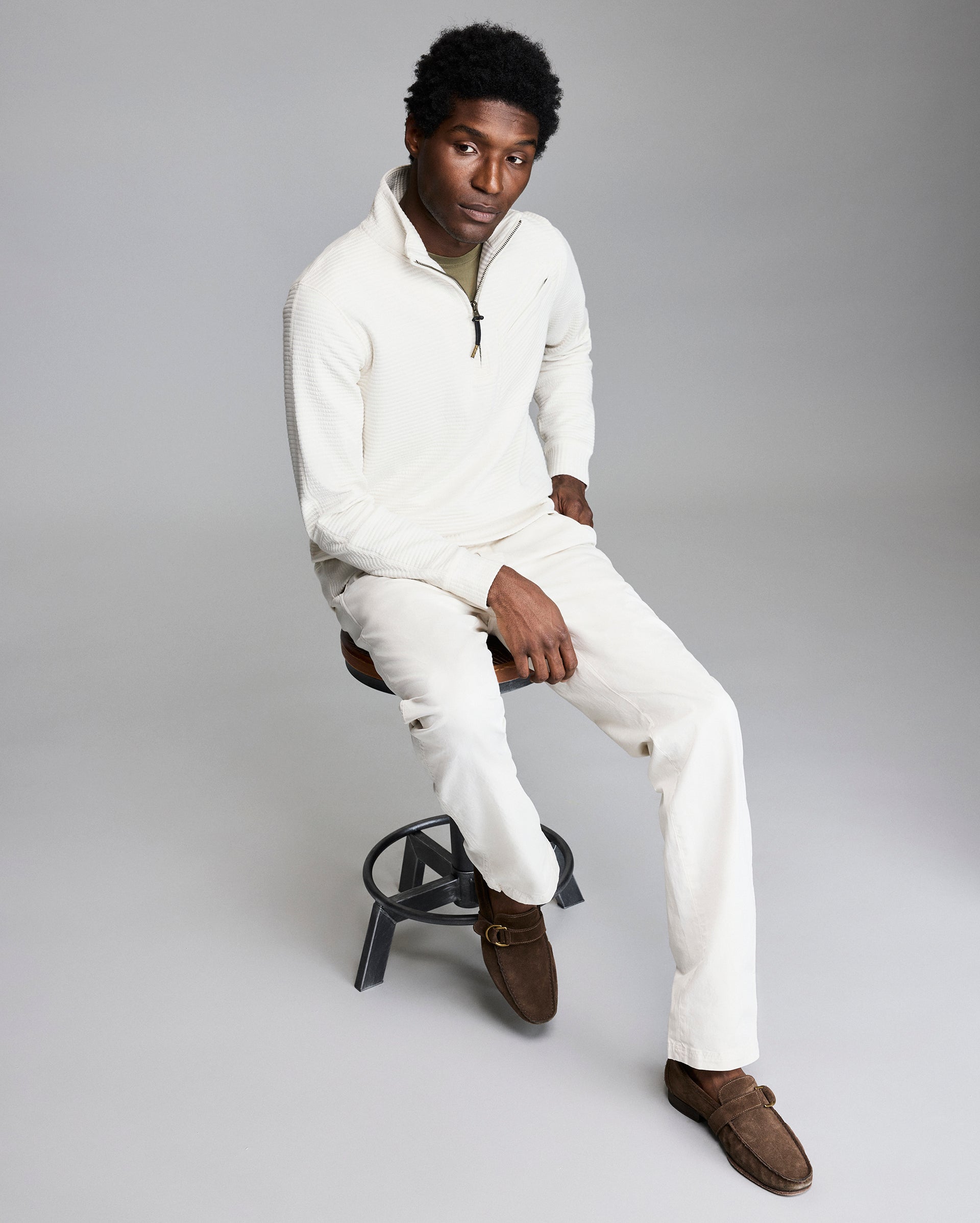 This lightweight half-zip is the perfect transitional layer, made from a comfortable cotton blend and finished with smart details like a subtle quilted stripe, an asymmetrical chest pocket, handsome elbow patches, and our signature ribbon stripe at the zipper and cord puller.