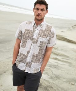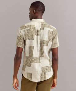Billy Reid Men’s Short Sleeve Brick Patchwork Tuscumbia Shirt Button Down | Olive Multi