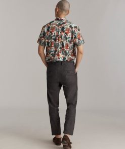 Liven up your summer style with a shirt that pairs a classic silhouette and shape with a custom artwork that dresses up or down. The unique colorway is sure to turn heads, whether you’re wearing it on its own to a barbeque or layering it under a dark suit to make a statement. The 100% linen style is a revived archive style that also breathes easily in the summer heat, making it the go-to shirt for the season.