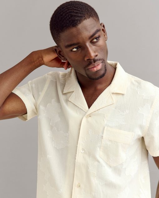 Billy Reid Men’s Short Sleeve Floral Jacquard Shirt | White