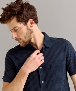 Billy Reid Men’s Short Sleeve Knit Treme Shirt | Carbon Blue