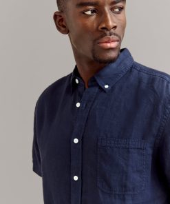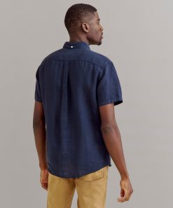 Billy Reid Men’s Short Sleeve Linen Tuscumbia Shirt Button Down | Carbon Blue