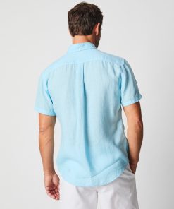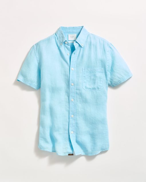 Our best-selling Tuscumbia shirt is the cornerstone of lived in luxury. This short-sleeve version is cut from lightweight linen that has been garment-dyed for an effortless, lived-in look and feel. It’s constructed in a standard fit and features a button-down collar, our signature notch pocket with double-needle stitching, and a box-pleated body. Thoughtfully finished with genuine mother-of-pearl buttons and a subtle detail: our heirloom ribbon applied to the bottom of the under placket.