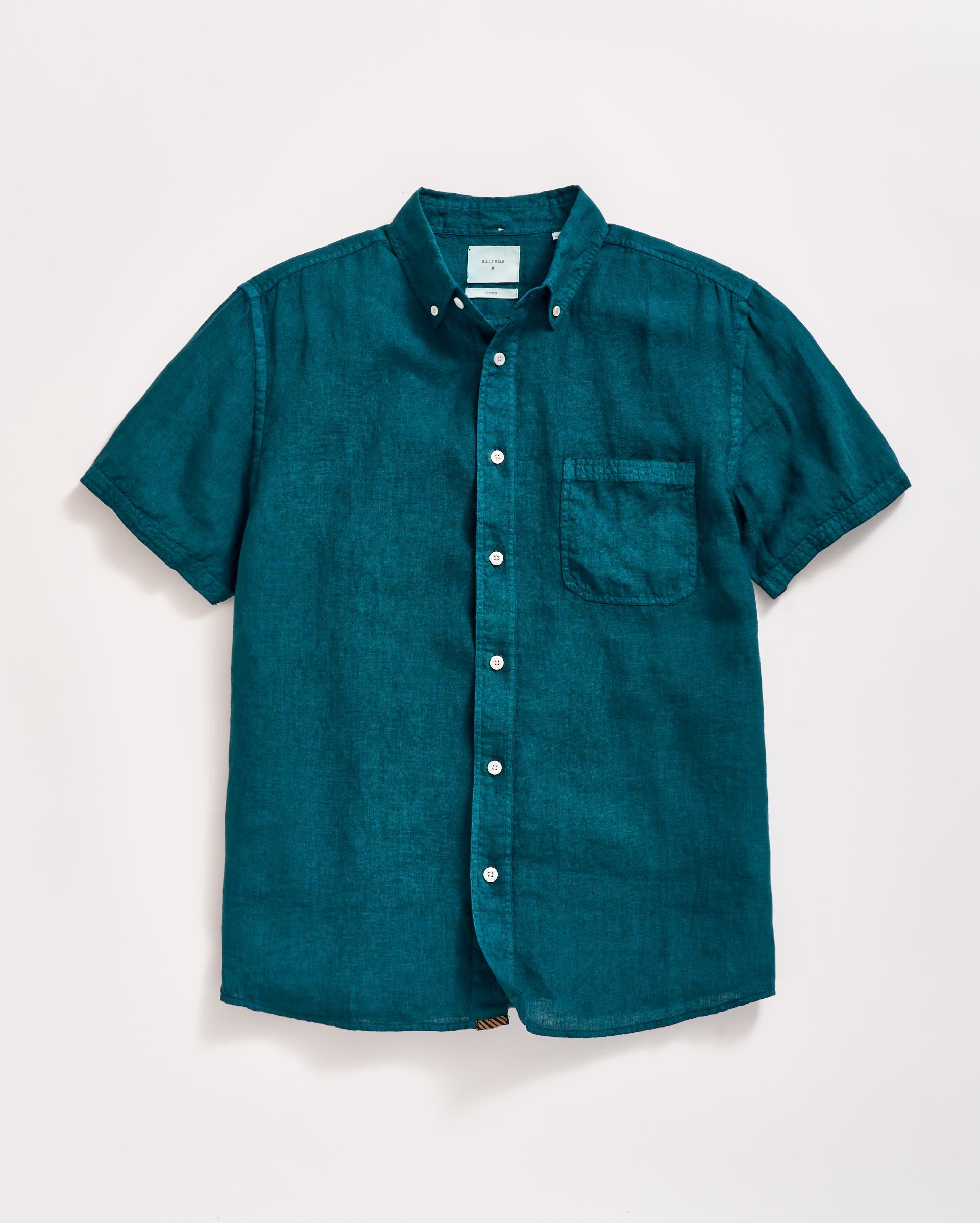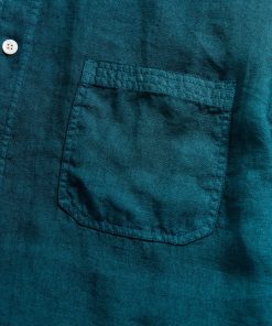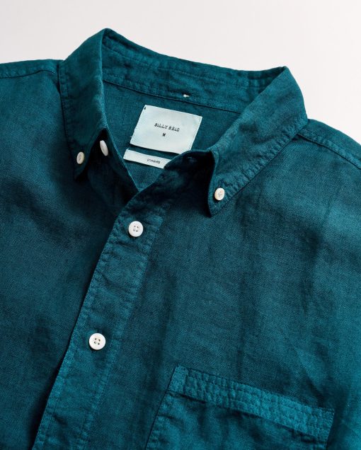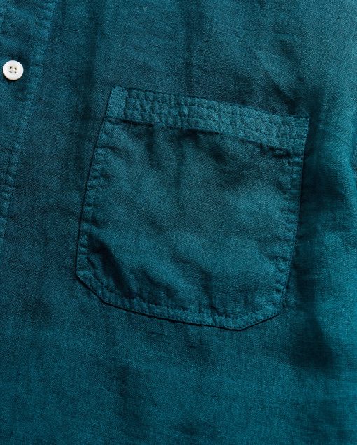Billy Reid Men’s Short Sleeve Linen Tuscumbia Shirt Button Down | Deep Teal