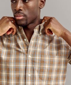Our best-selling Tuscumbia shirt is the cornerstone of lived in luxury. This short-sleeve version is cut from 100% cotton and features a melange plaid pattern, giving it a lived-in look and feel. It’s constructed in a standard fit and features a button-down collar, our signature notch pocket with double-needle stitching, and a box-pleated body. Thoughtfully finished with genuine mother-of-pearl buttons and a subtle detail: our heirloom ribbon applied to the bottom of the under placket.