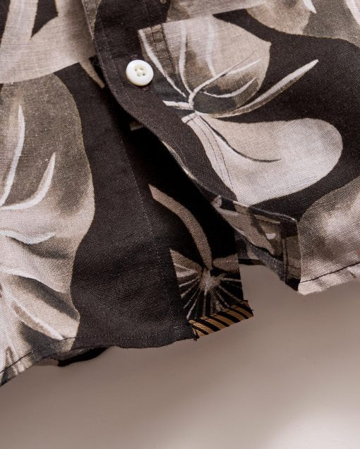 This striking, custom print is perfect for summer dinners at sunset. Its large-format print is based on the elephant ear plant and printed on soft, airy cotton-linen fabric that’s perfect for warm weather. We’ve taken the art work and sectioned it so it falls perfectly on the body. The cotton-linen blend also allows for a wider range of motion while keeping you cool under the collar.
