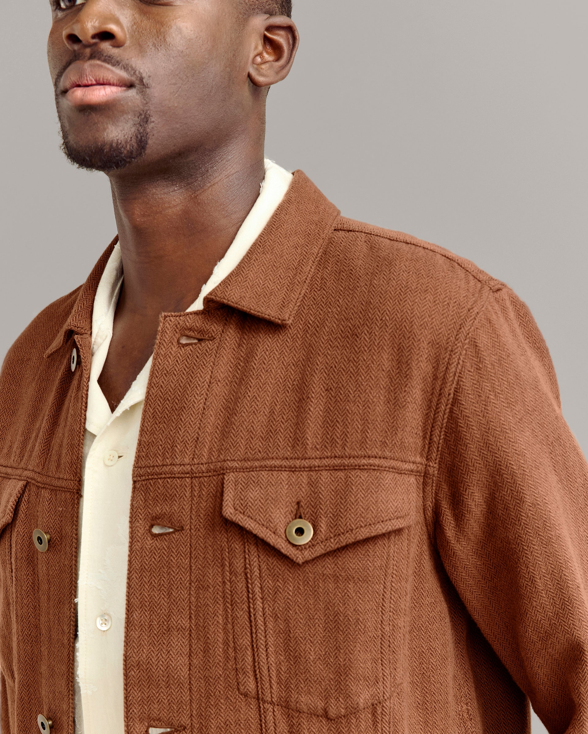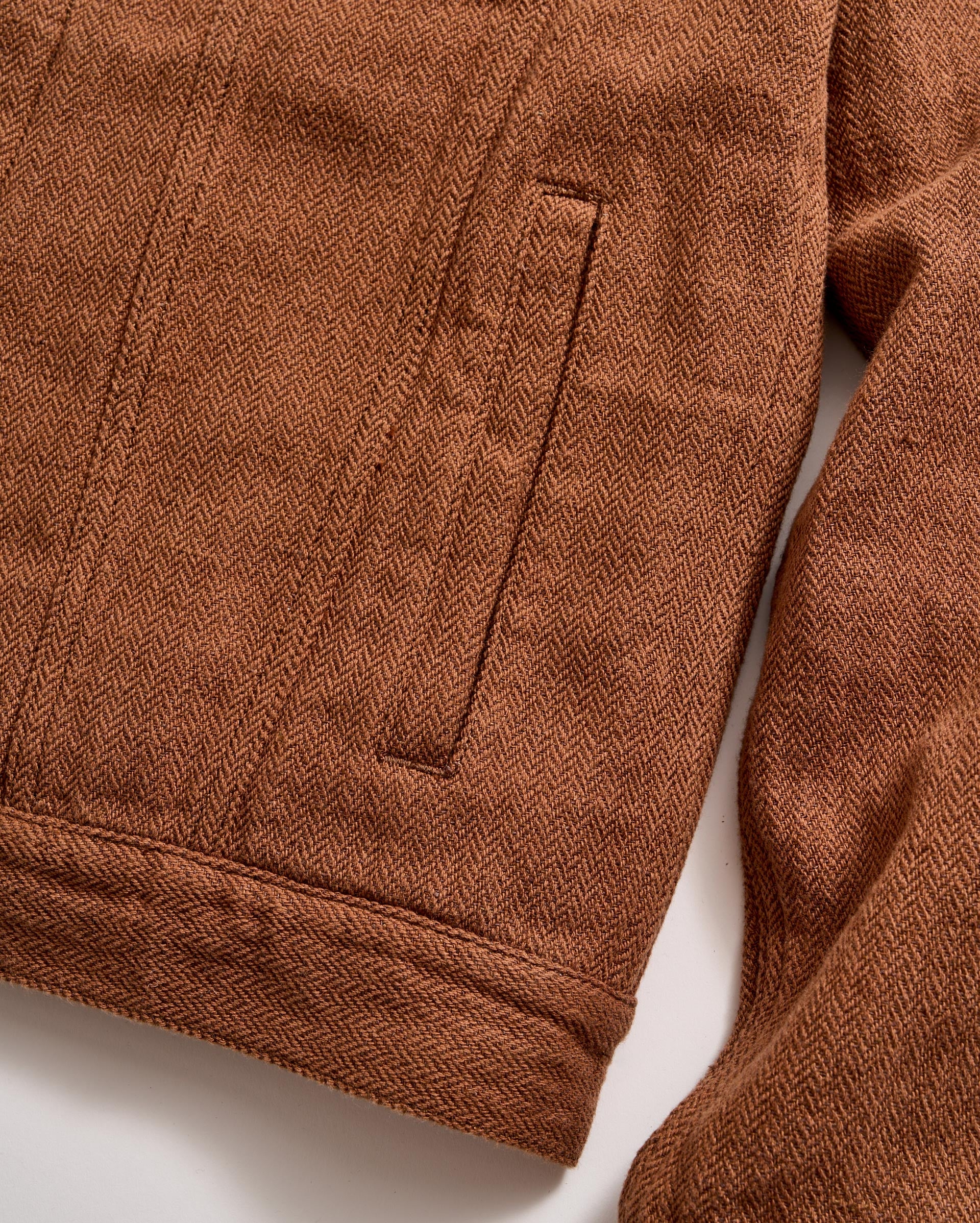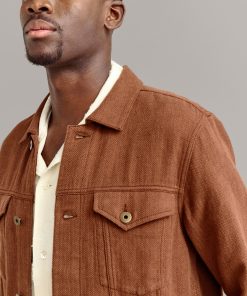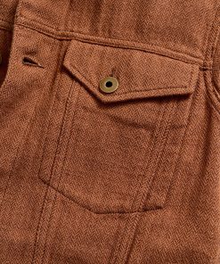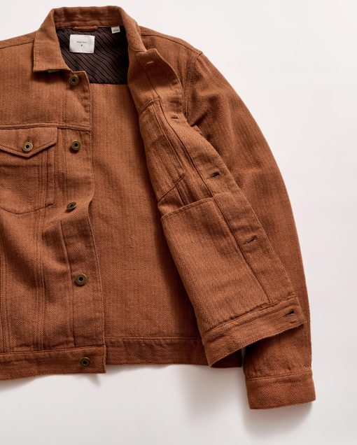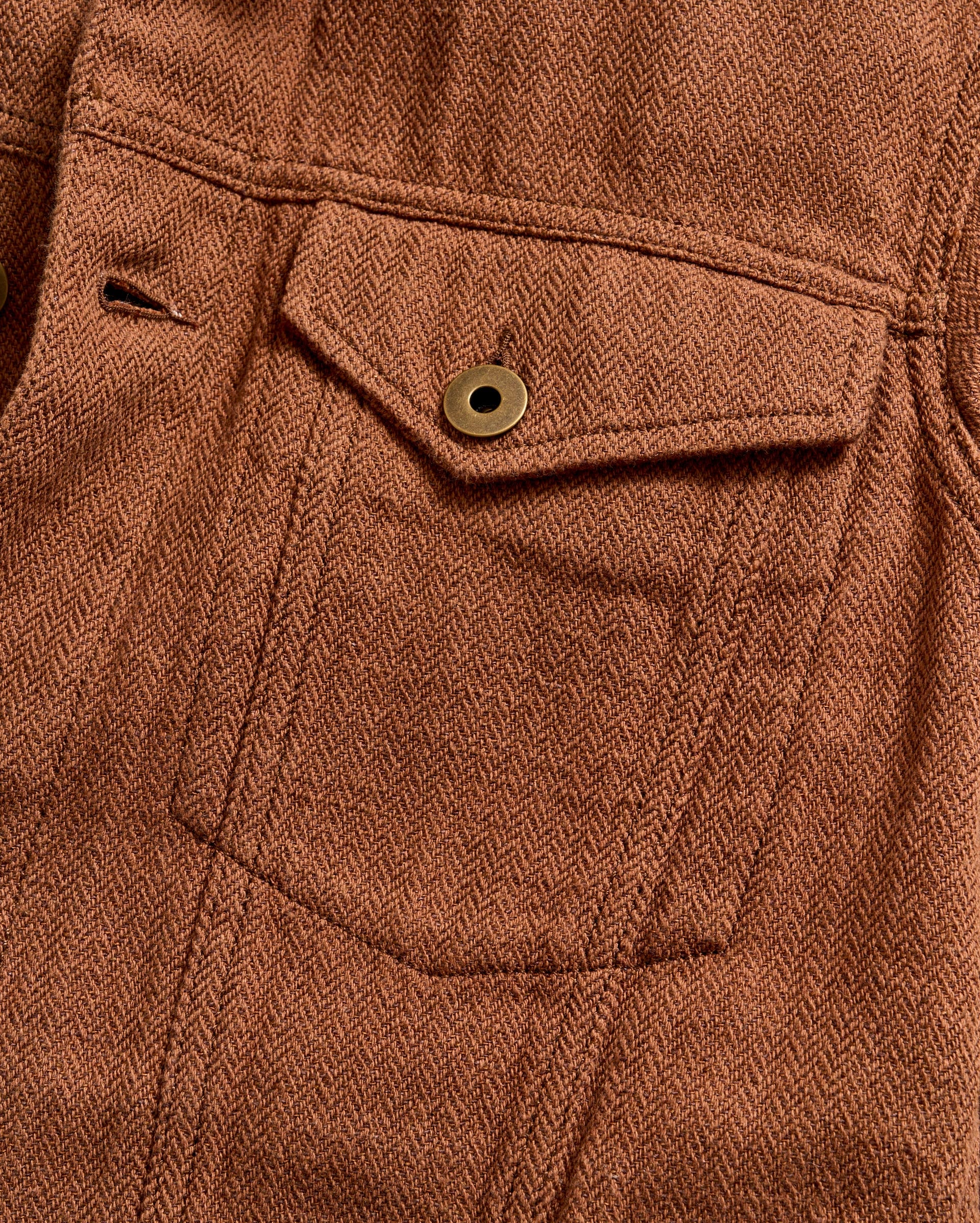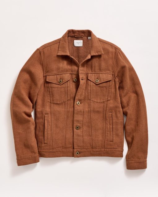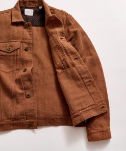 A timeless piece, our Tupelo Trucker Jacket is back with a new fabrication of our classic style using a new yarn-dyed fabric with oak brown and chocolate herringbone yarn. It’s cut in a beautiful, supple fabric that gets better and better with every wear. It features chest pockets with flaps and welt pockets at the waist. Finished with signature details like antique brass tack buttons at the cuffs embossed with our signature heirloom ribbon stripe. Dress it up or down with ease throughout the season and in seasons to come.