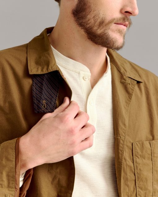 We tapped our friends in Scotland at Halley Stevensons to craft one of our new favorite jackets for the season. The Waxed Chore Jacket is crafted in the classic style using the mill’s ripstop fabric in a tight weave. It’s finished with fully lined sleeves and body, and a striped liner. The waxy finish on the outside will stand up to the elements and protect from rain and wind while the cotton and linen lining feels soft against the skin.