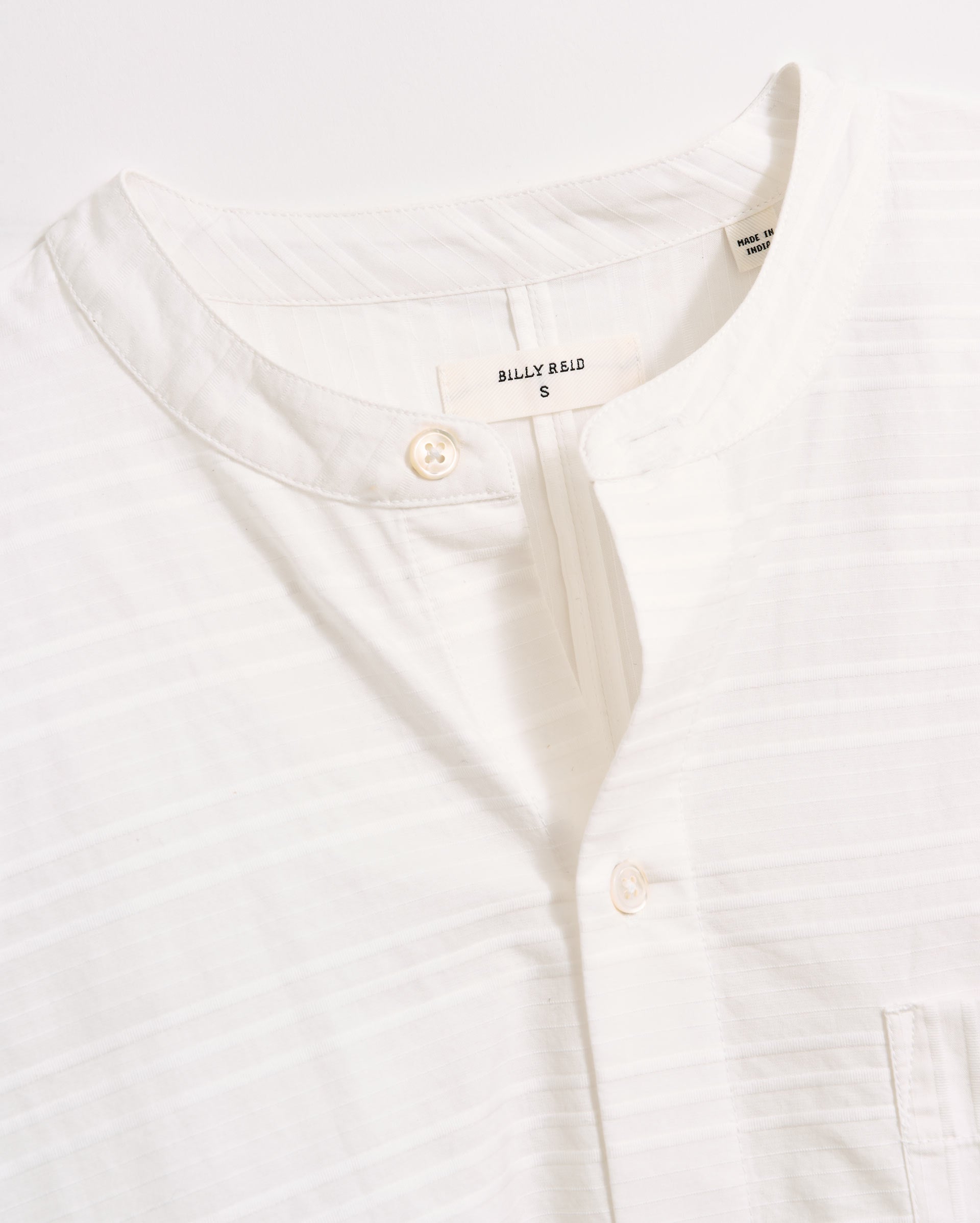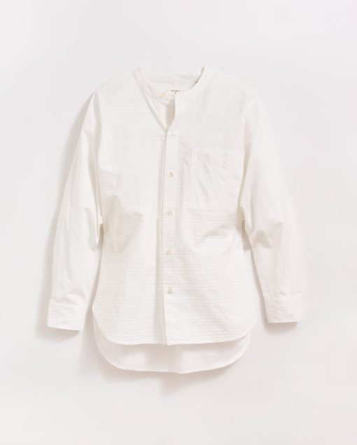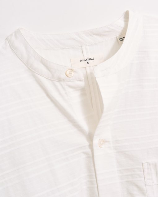 This classic white button-down is a staple of any wardrobe. The straight shirt has a utilitarian style, with sleeves tapered to the cuff. It’s inspired by some of our favorite menswear silhouettes, adjusted to have a more feminine cut. The clean, modern look is made with 100% cotton and finished with mother of pearl buttons. It’s a great blank canvas with a band collar that complements a wide variety of looks.