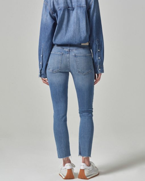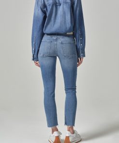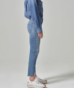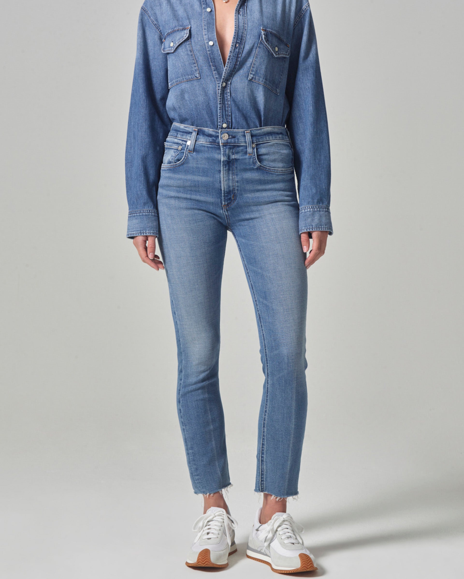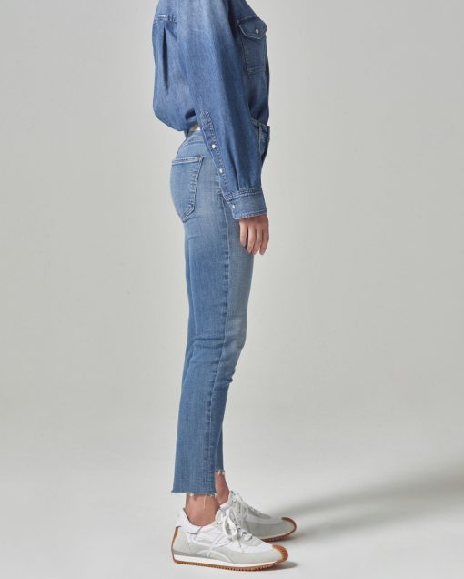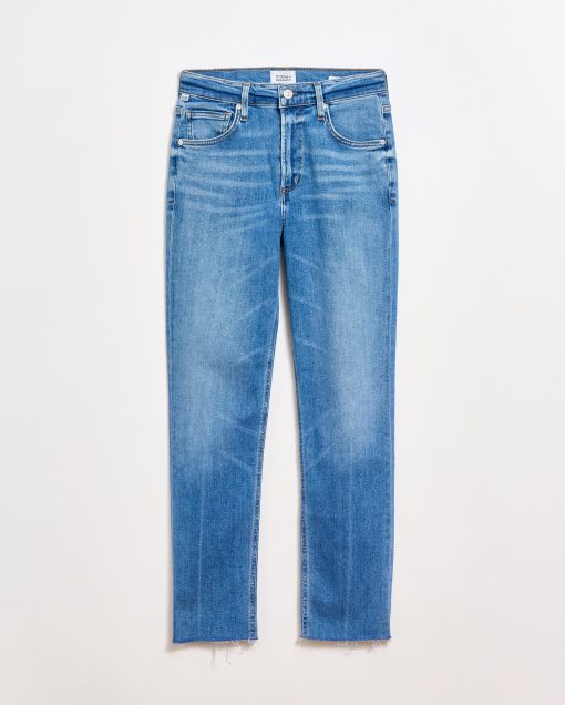 Our Isola features an easy mid-rise with an ultra-flattering top block in a true-to-size fit. Designed with a slim fit to the knee into a 26″ inseam – this pair can be styled with just about everything. It features a bright indigo with heavy fading, whiskering, and finished hems. Incredibly soft and with a just-right stretch, yet designed to hold its shape all day long.