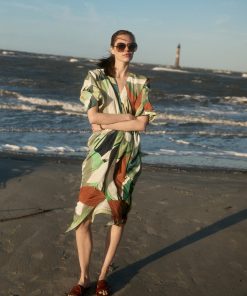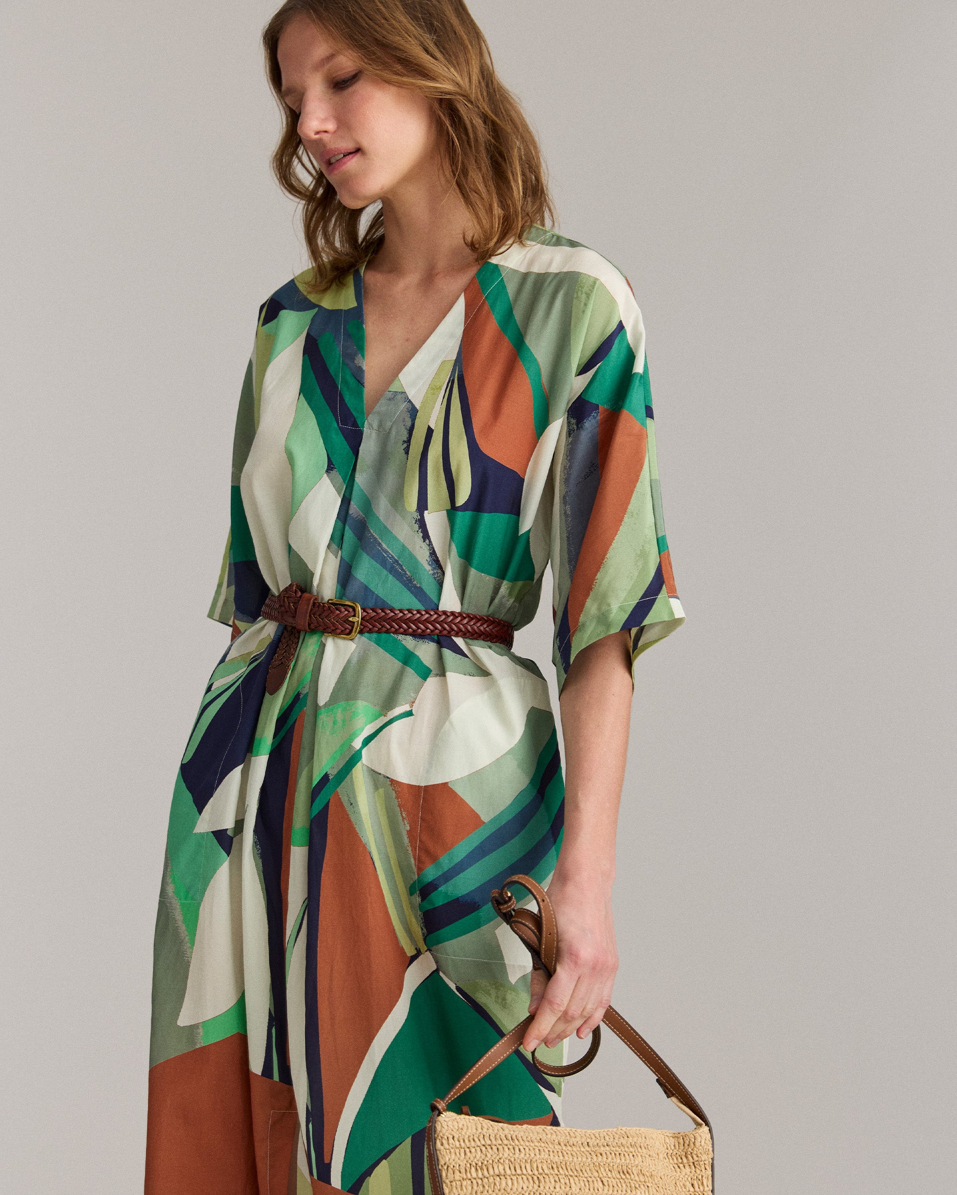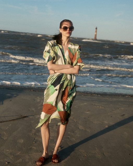 The printed, v-pleat dress was inspired from some of our favorite men’s neckties. This V-neck dress has dolman elbow-length sleeves and a deep pleat from the neck line. Bring it out anytime this season to fully embrace the changing season—it’s spring in a dress.