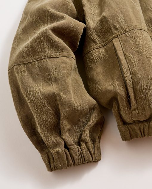 We’ve updated the body of our classic bomber jacket style with a luxe new jacquard fabrication in a new color. The result is a tencel-linen blend piece that’s relaxed through the chest and sleeves and fitted at the hem. It’s the perfect piece to pull on over a simple spring look for that one extra layer before heading out the door.
