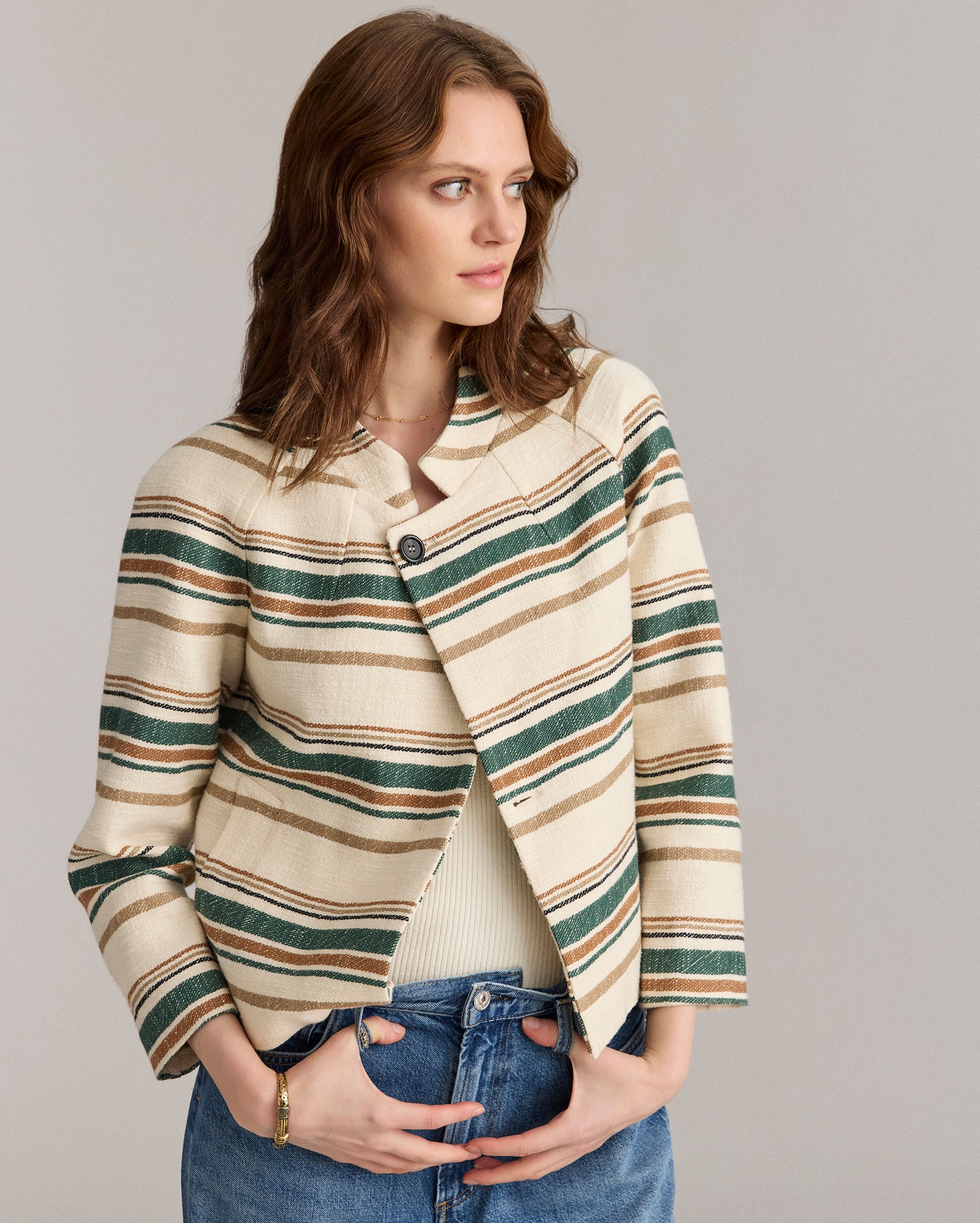 Billy Reid Women’s Desert Stripe Cropped Jacket | Natural Green