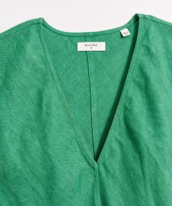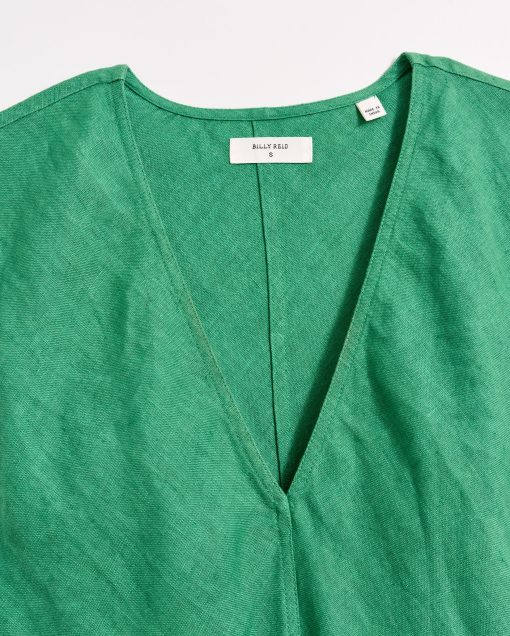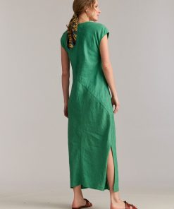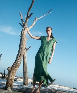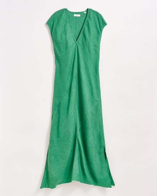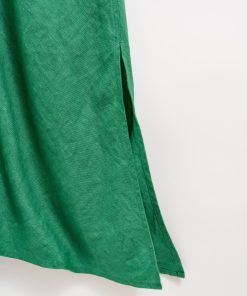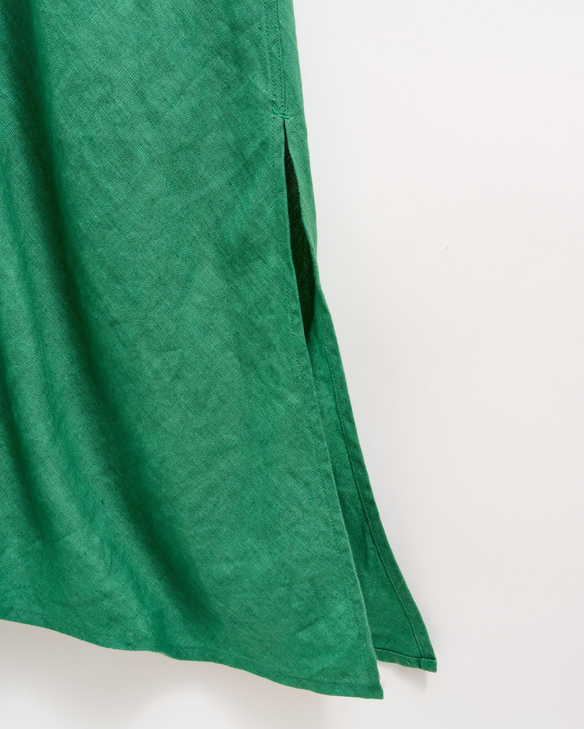 This ethereal dress has a beautiful flow with every movement. The green linen shade is a welcome signifier for warmer days ahead. The carryover style from a previous season has been reimagined in a new fabrication but keeps its sophisticated silhouette.
