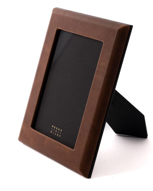 Enhance your favorite memories with our beautiful, leather-wrapped picture frames. The handcrafted frames stand either vertically or horizontally on a sturdy metal easel. A convenient but secure rear drop-down door makes it easy to insert your photos.