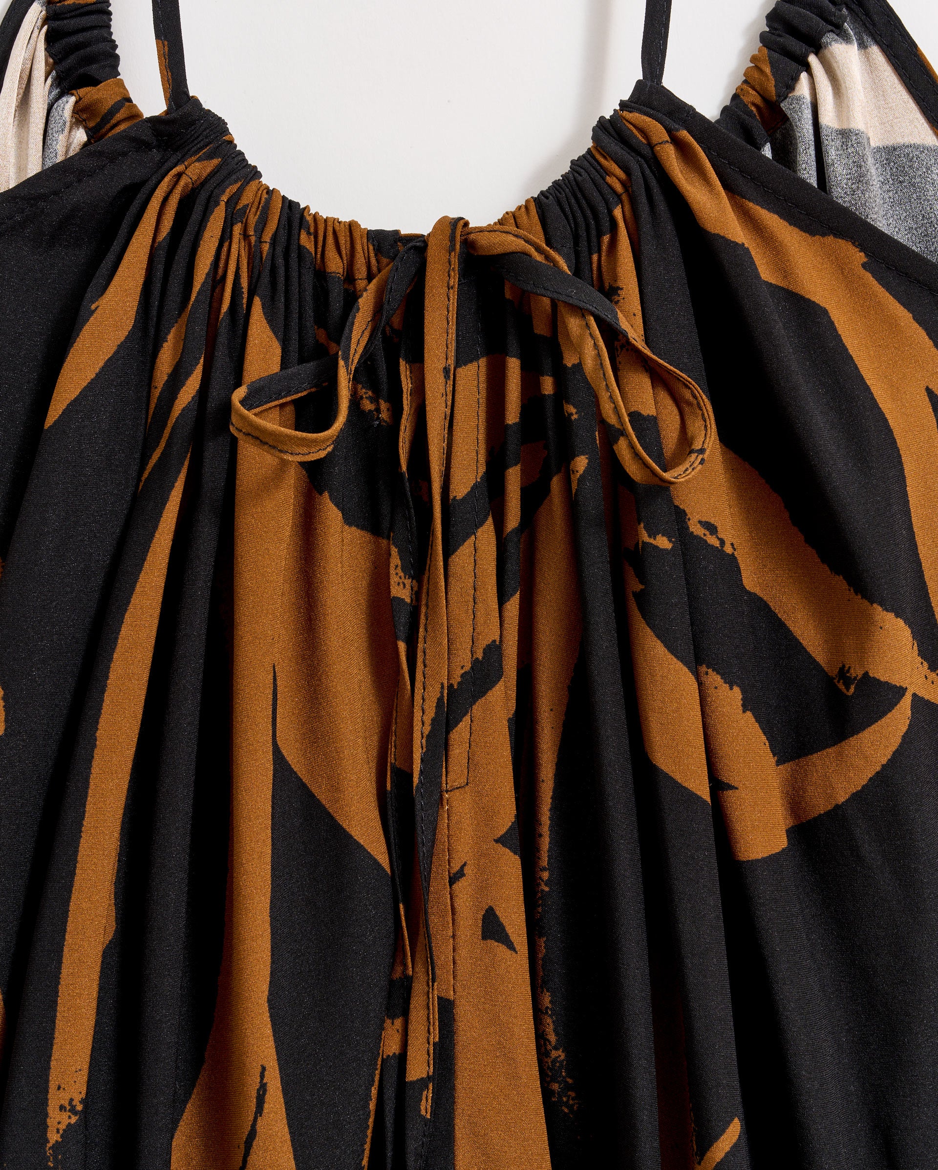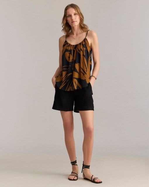 This summer-ready cami is ready for days in the sun. We’re reimagining the design and using fabric from the floral V-neck Maxi Dress into a top that’s relaxed, airy, and perfect to wear for a night on the town. As one of our more versatile looks for the season, it’s ready to go wherever you do.