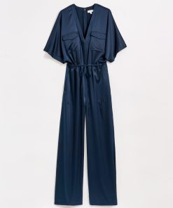 We’ve reimagined the jumpsuit style with a luxe new silk fabrication. The style has a cinched waist and a wider leg for a flowing fit. Leave the workwear inspiration of the jumpsuit style behind and wear this flowy fabric the way you would a silk dress. The dressier design works with sandals for a casual approach or your favorite heels for a night out.