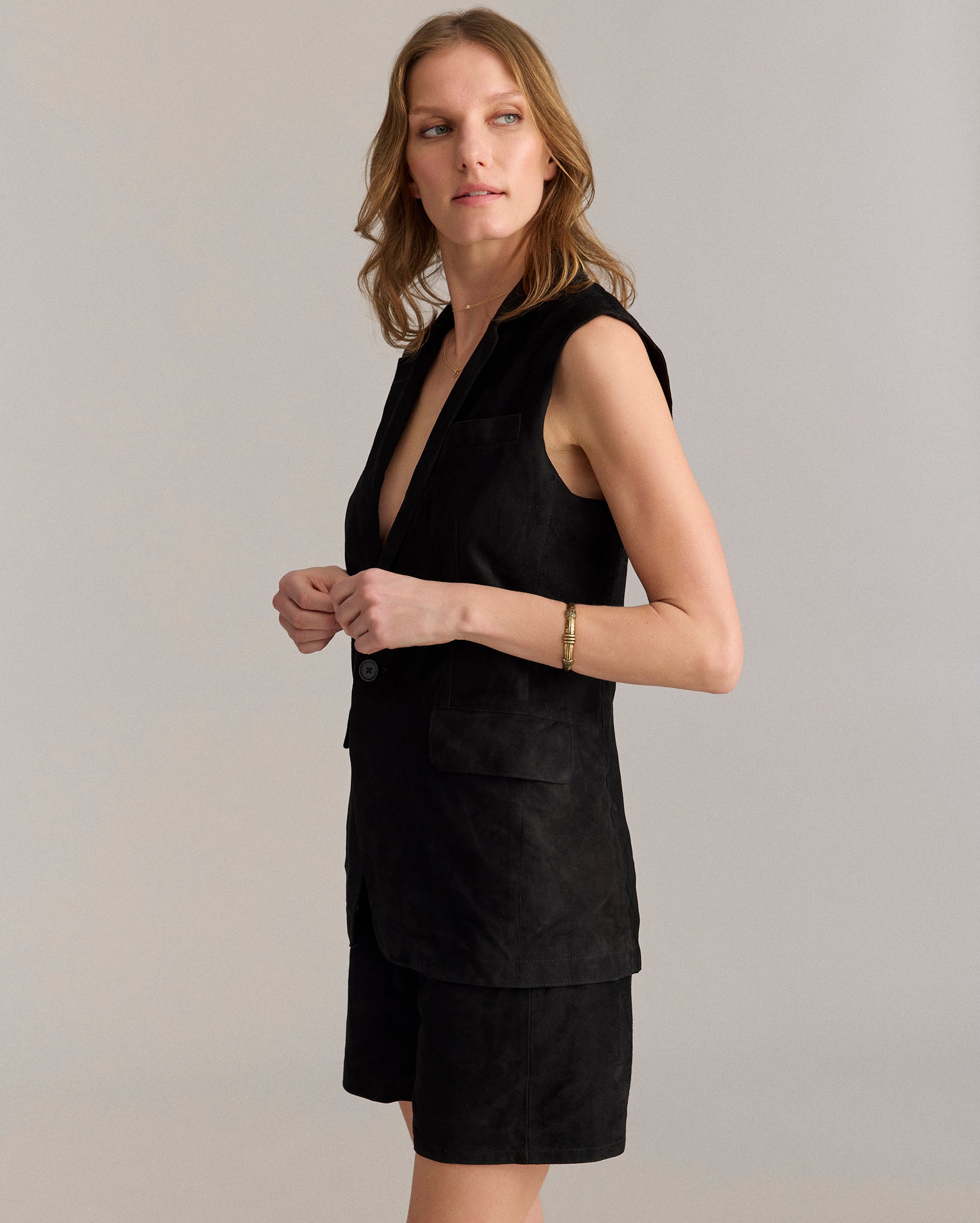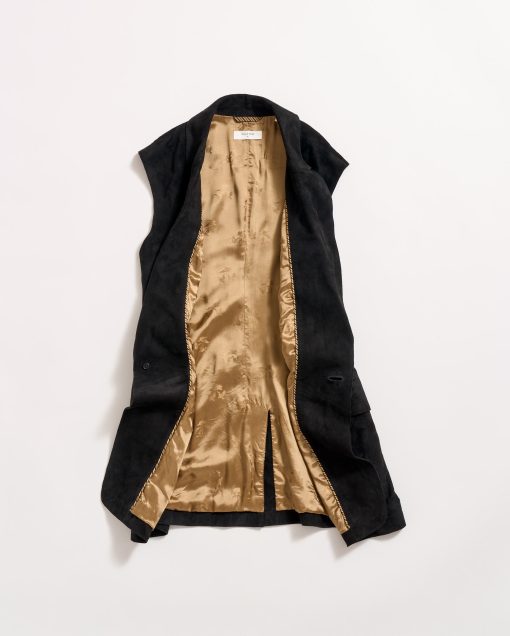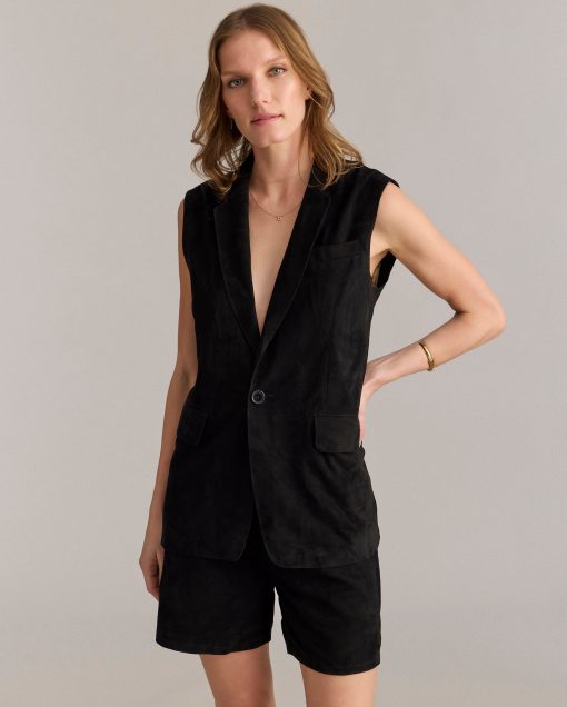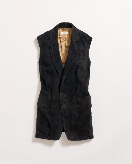 This suede style is perfect for the warmer months ahead. Crafted from luxe, supple goat suede, this timeless silhouette is built to breathe easily with a standard, tailored fit. Wear it over a formal shirt or over a simple tee with suede shorts. The vest is finished with single entry pockets at the waist and finished in gold lining with our heritage pelican motif.
