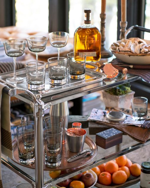 Upgrade your next cocktail hour with exclusive glassware and tools from our collab with Williams Sonoma. These sculptural coupe glasses are crafted from mouth-blown crystalline that has been fire polished and hand-etched with our signature heirloom stripe at the base. The unique color is inspired by Billy’s love for oysters. Set of four glasses.