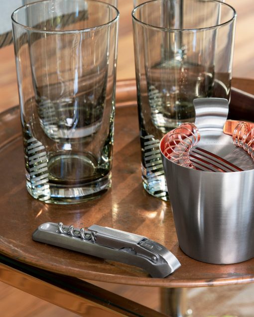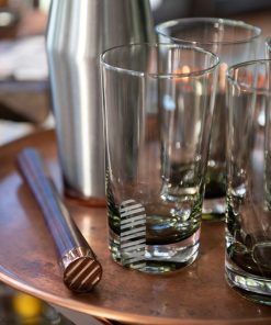 pgrade your next cocktail hour with exclusive glassware and tools from our collab with Williams Sonoma. These elevated highball glasses are crafted from mouth-blown crystalline that has been fire polished and hand-etched with our signature heirloom stripe. The unique color is inspired by Billy’s love for oysters. Set of four glasses.
