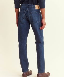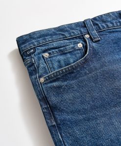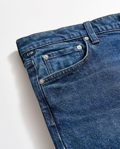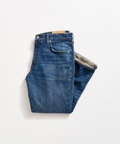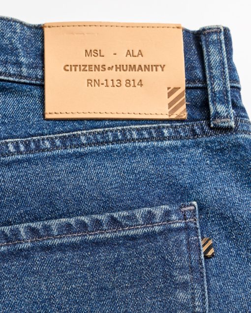 The Citizens of Humanity x Billy Reid collaboration brings you Citizen of Humanity’s bestselling Adler fit in three exclusive-to-Billy Reid washes. Made in the USA, the Adler Slim Straight fit offers a slightly higher rise and fits full through the waist and thigh with a small taper from the knee down. This exclusive wash is a medium vintage indigo with noticeable fading and whiskering, providing an everyday and casual ease. It’s a lightweight comfort stretch denim, perfect for all-day wearability. Finished with thoughtful Billy Reid touches, like leather washers and a beautiful leather patch embossed with our signature heirloom ribbon stripe.
