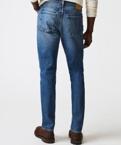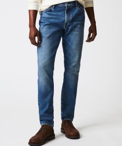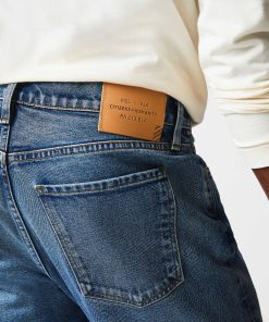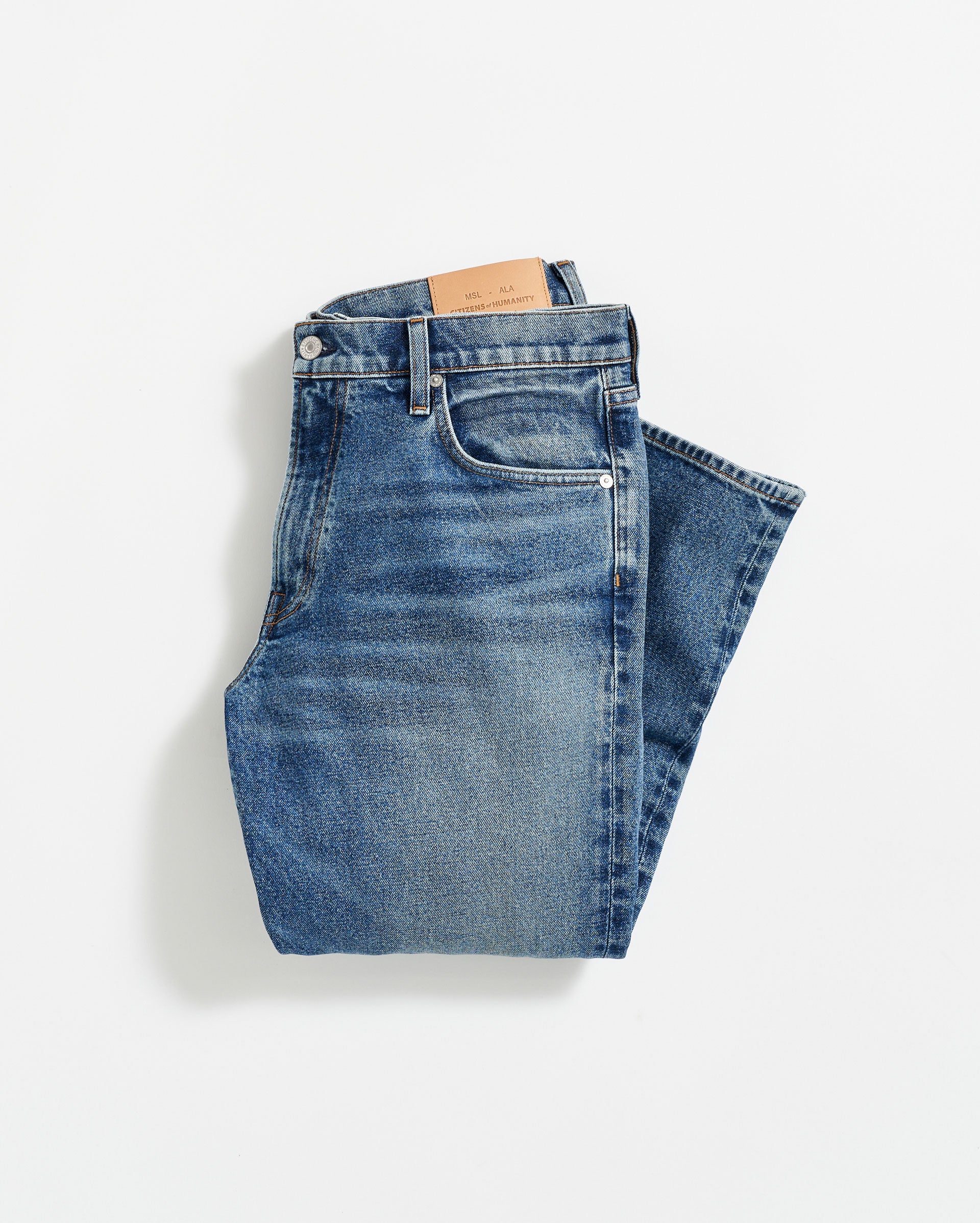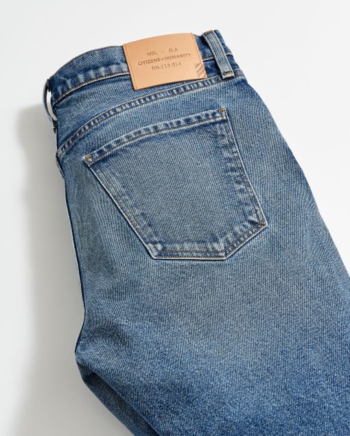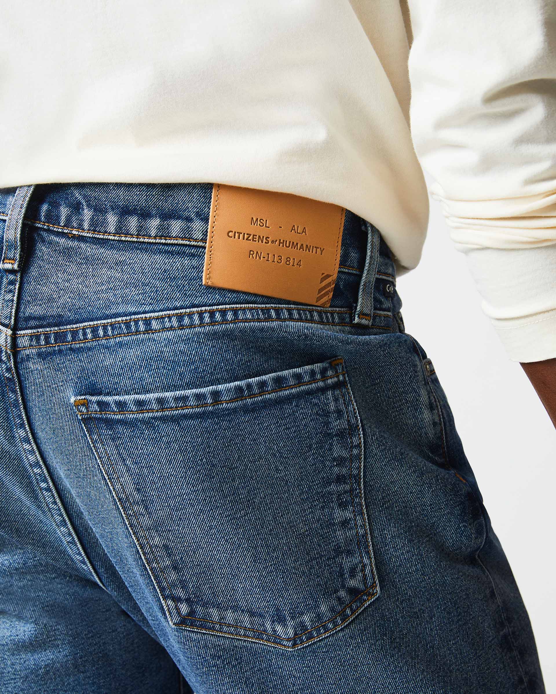 The Citizens of Humanity x Billy Reid collaboration brings you Citizen of Humanity’s bestselling Adler fit in three exclusive-to-Billy Reid washes. Made in the USA, the Adler Slim Straight fit offers a slightly higher rise and fits full through the waist and thigh with a small taper from the knee down. This exclusive wash is a medium vintage indigo with noticeable fading and whiskering, providing an everyday and casual ease. It’s a lightweight comfort stretch denim, perfect for all-day wearability. Finished with thoughtful Billy Reid touches, like leather washers and a beautiful leather patch embossed with our signature heirloom ribbon stripe.